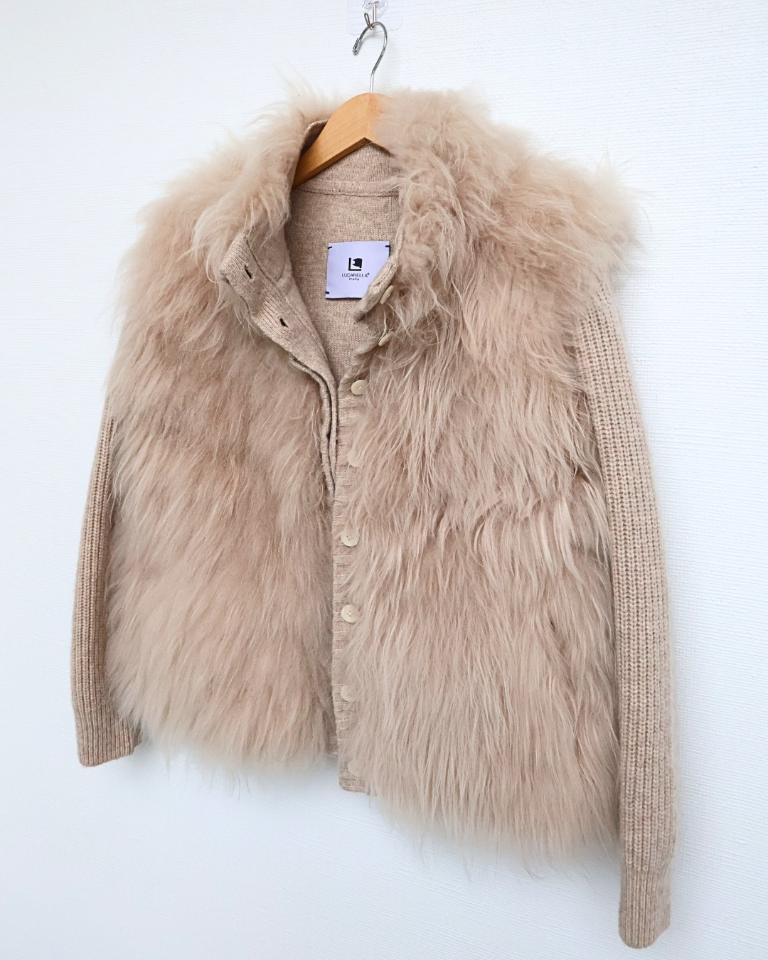 Beige Cashmere Goat Fur & Knit Cardigan