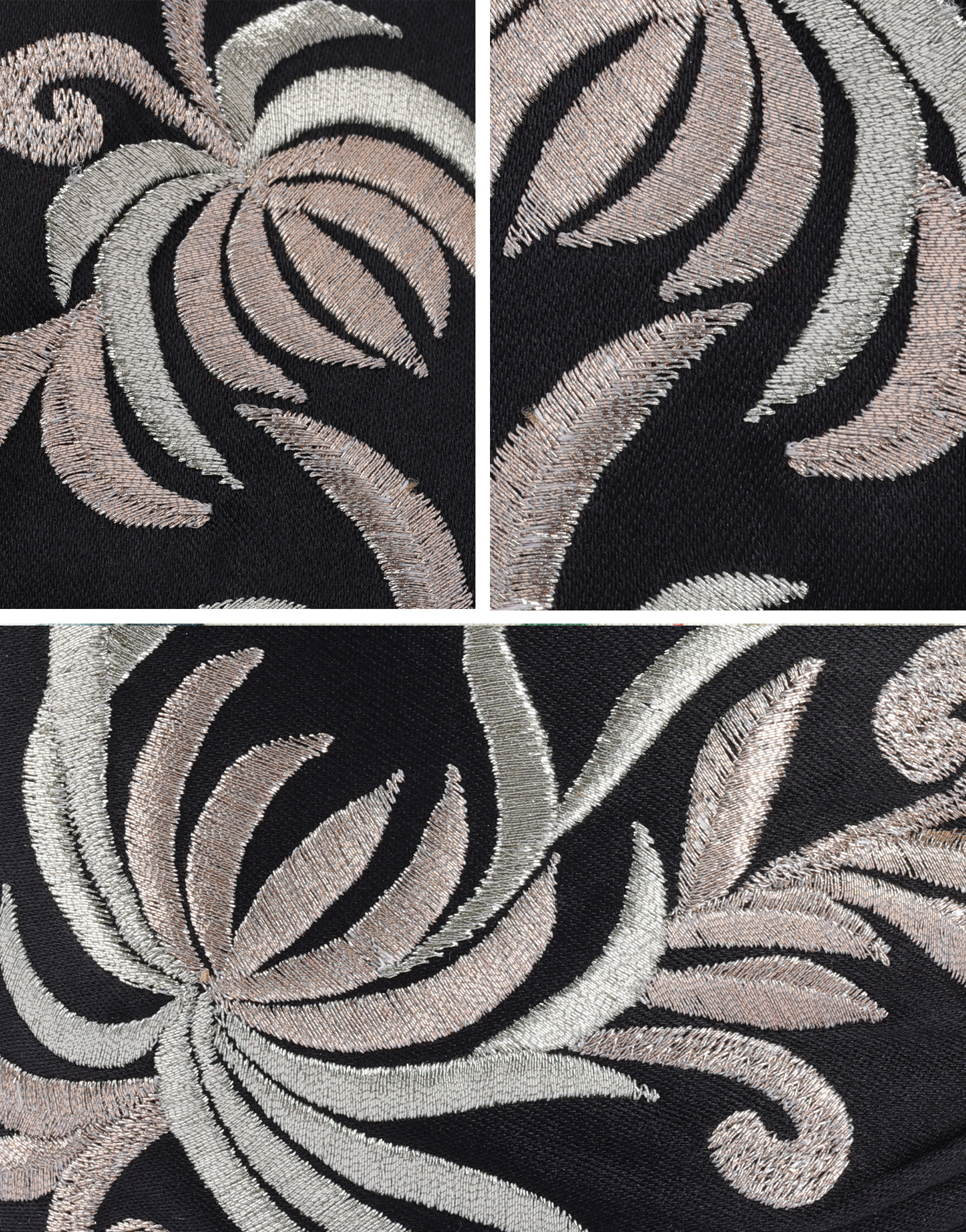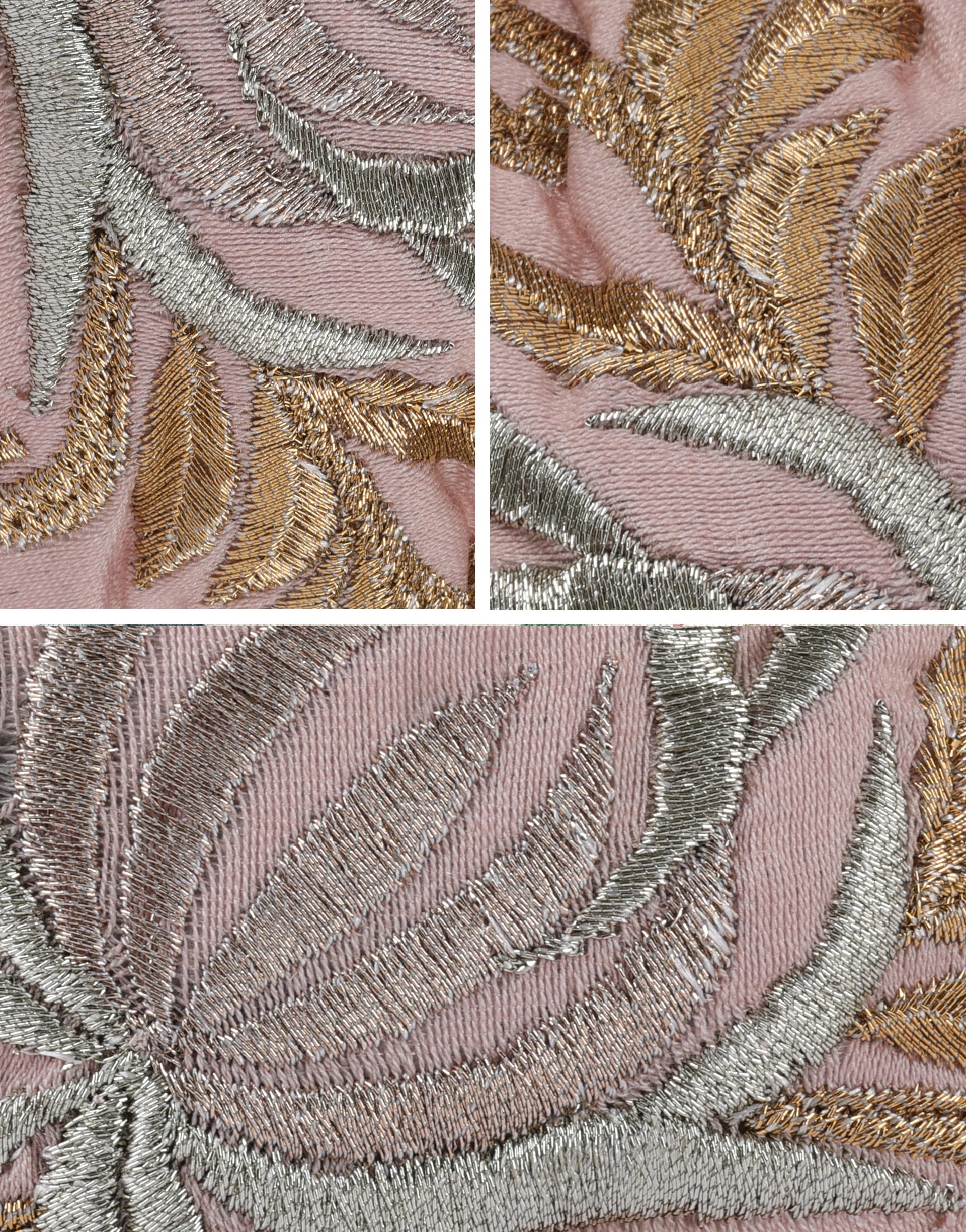 Silver and gold embroidered ferns.