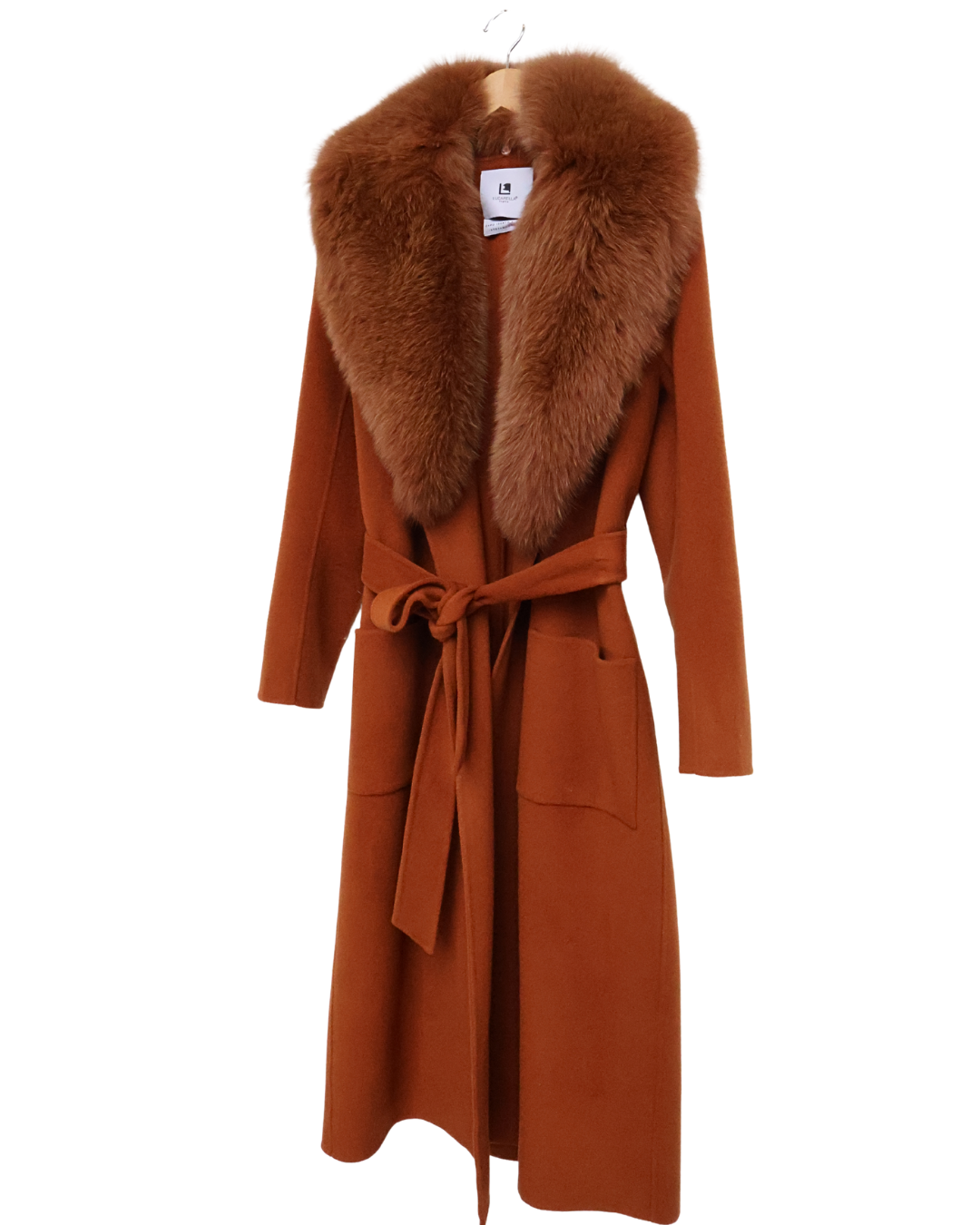 Burnt Orange Wool-Cashmere Coat with Fox Collar