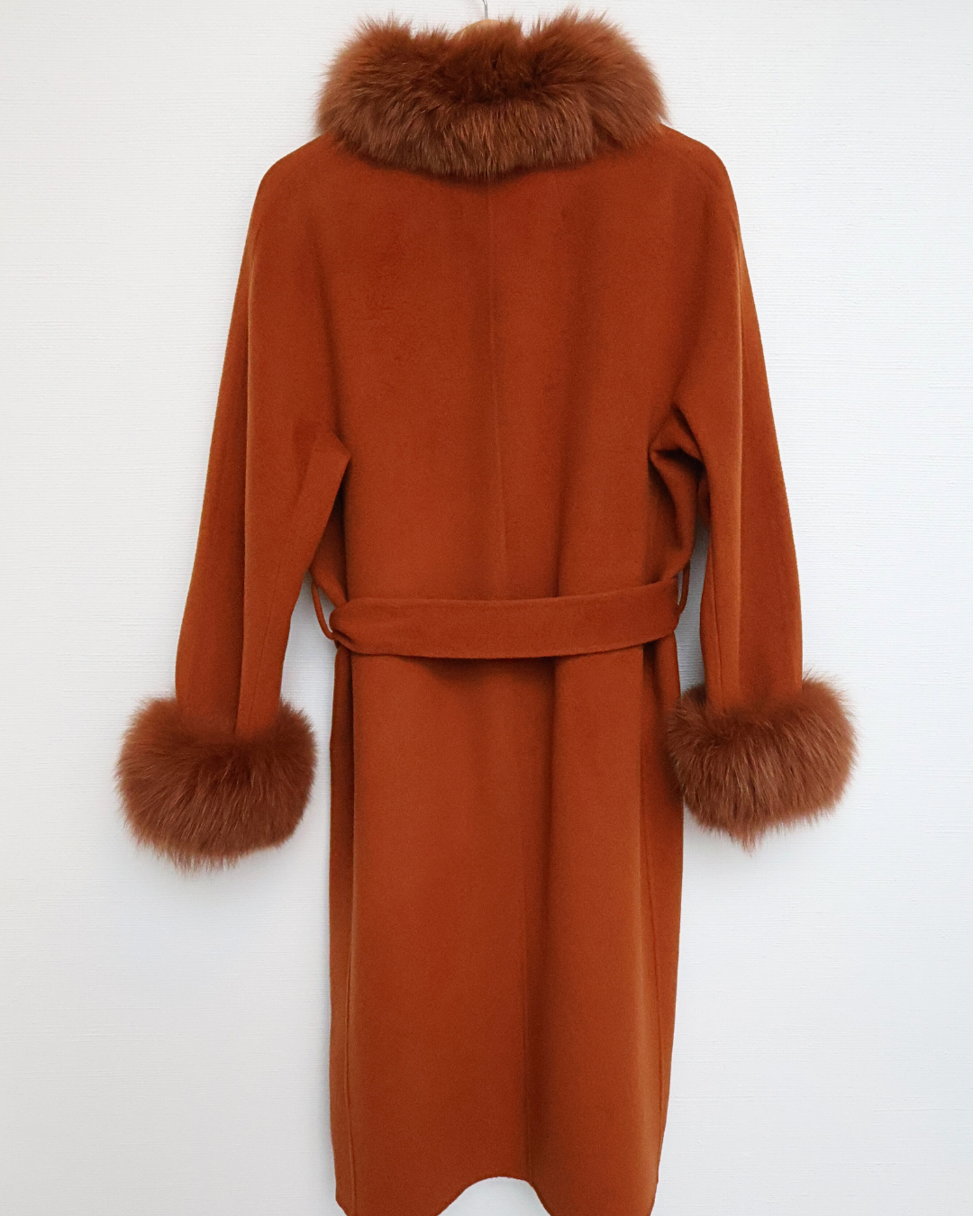 Burnt Orange Wool-Cashmere Coat with Fox Fur