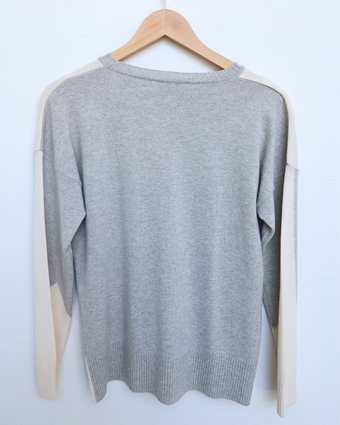 A contemporary colour-block sweater with a lightweight feel and refined finish, ideal for transitional dressing and layering.