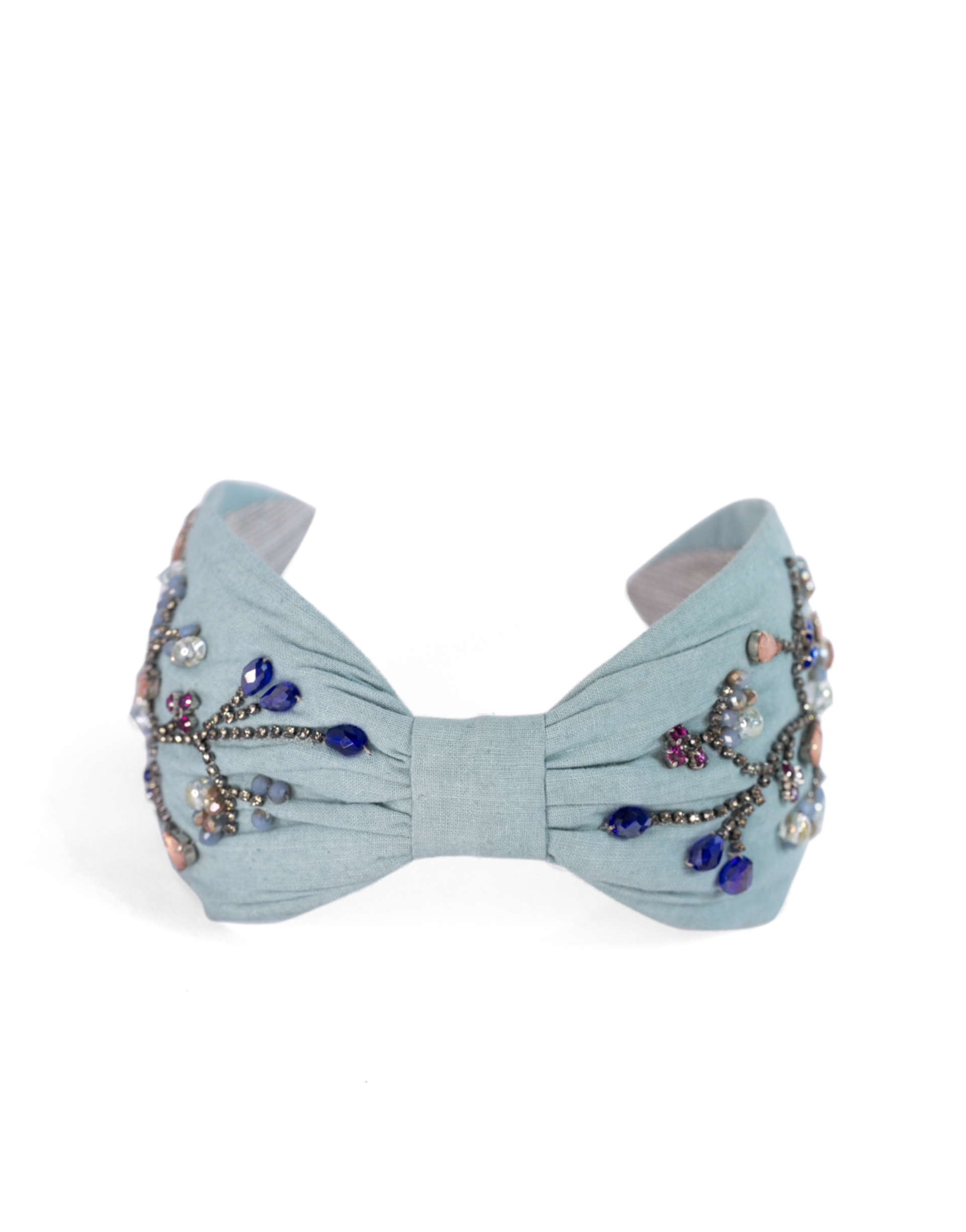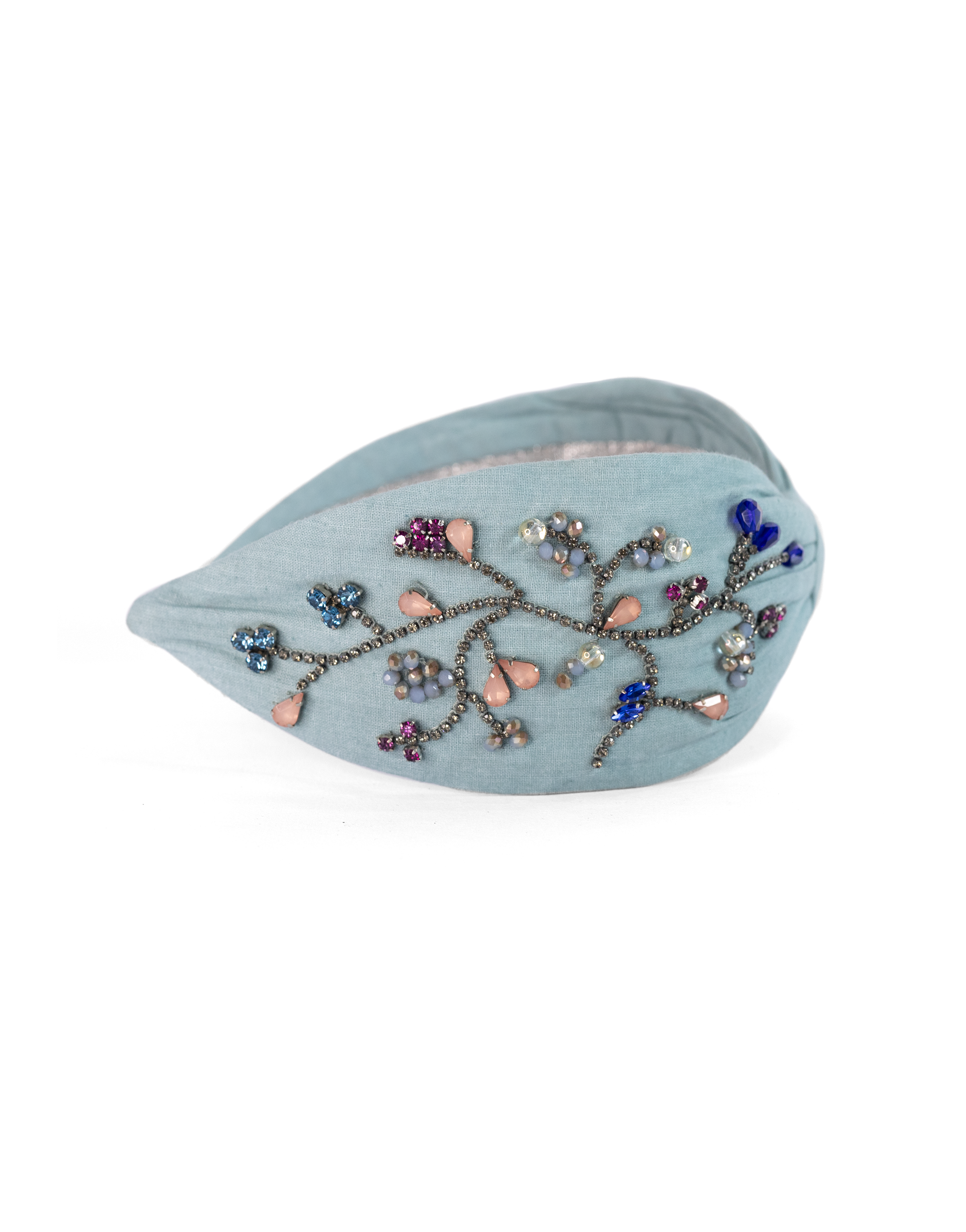 Headband featuring intricate vine detailing with multicoloured floral beads.