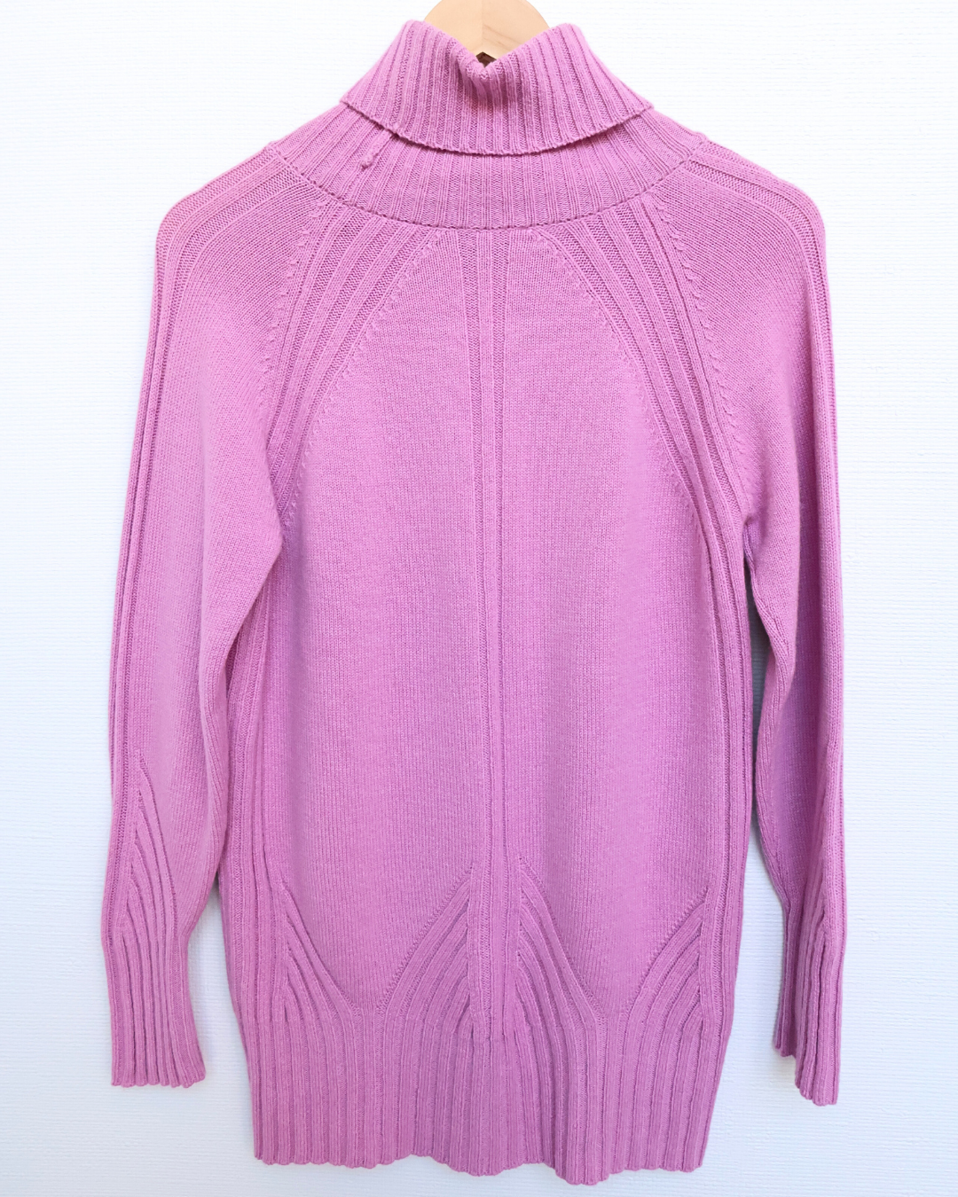 A sophisticated fold-over turtleneck sweater with refined ribbed detailing, offering a flattering fit and luxurious warmth with a smooth, fluid drape.