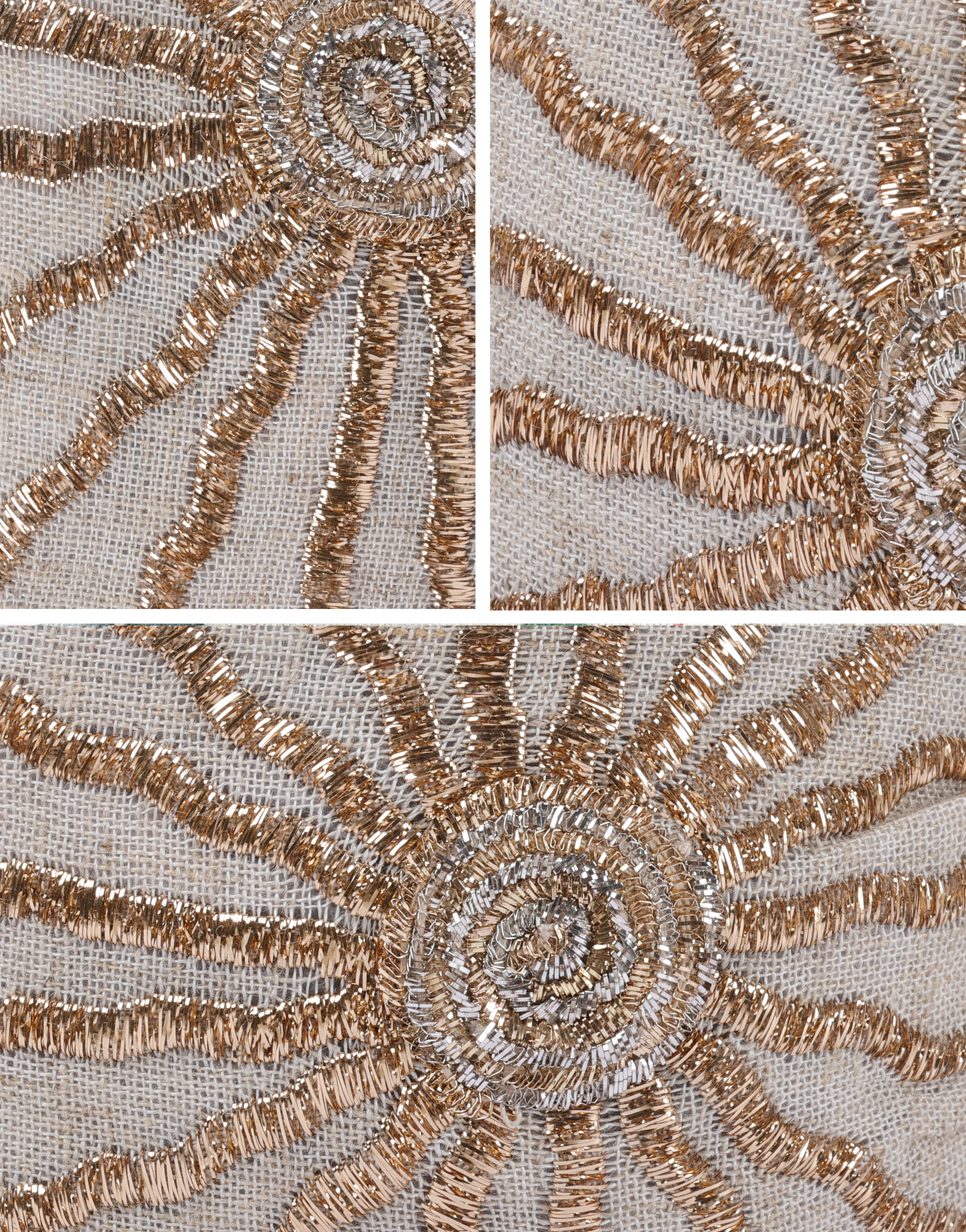 Soft linen base, hand-embroidered with a radiant golden sun motif.