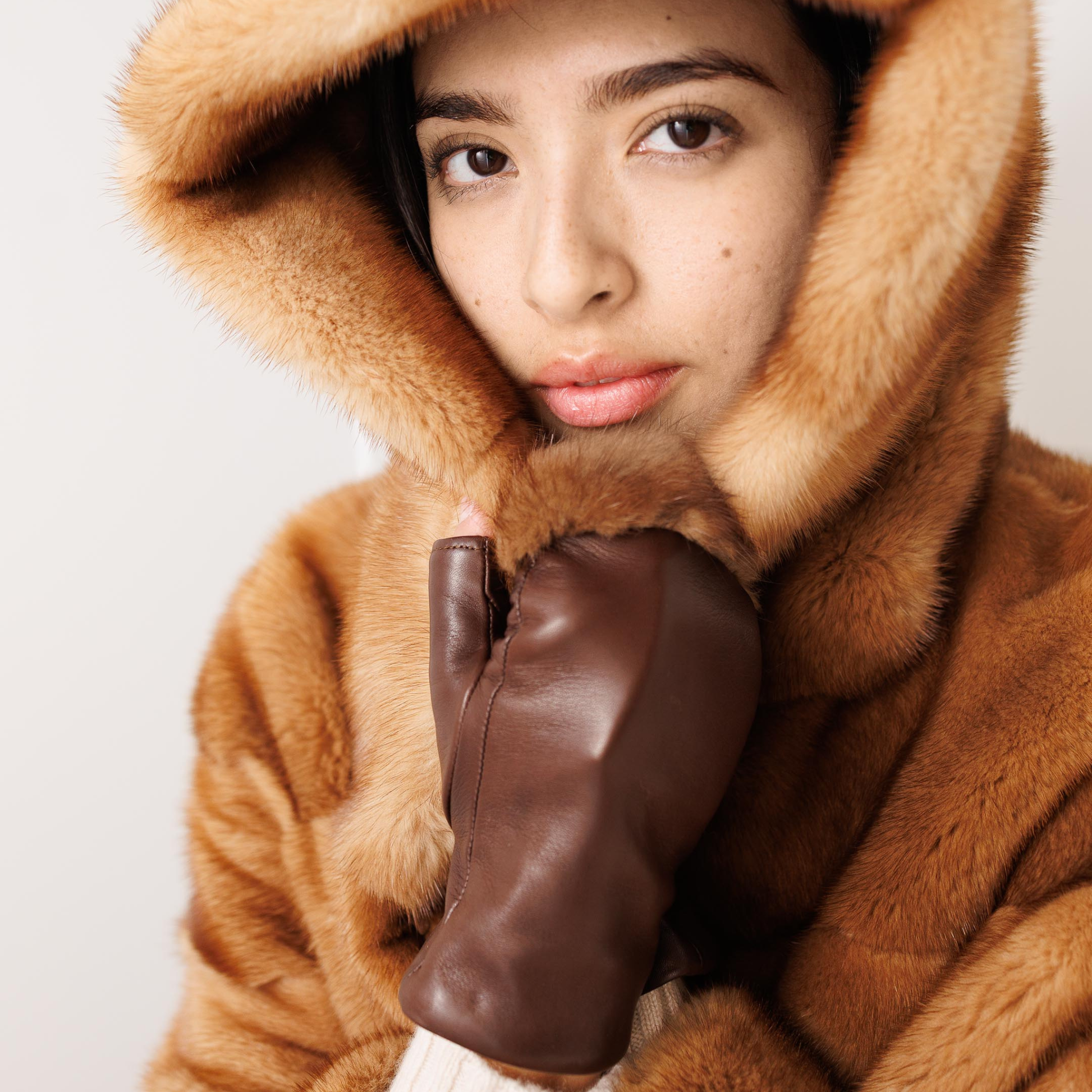 Camel Mink Fingerless Gloves