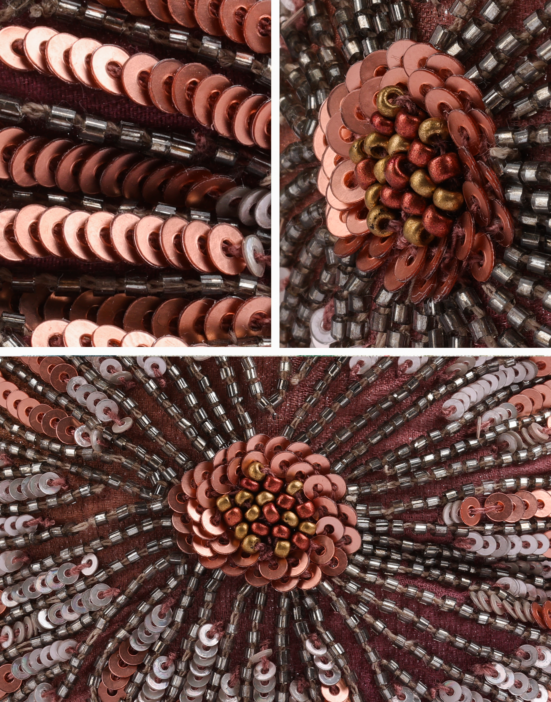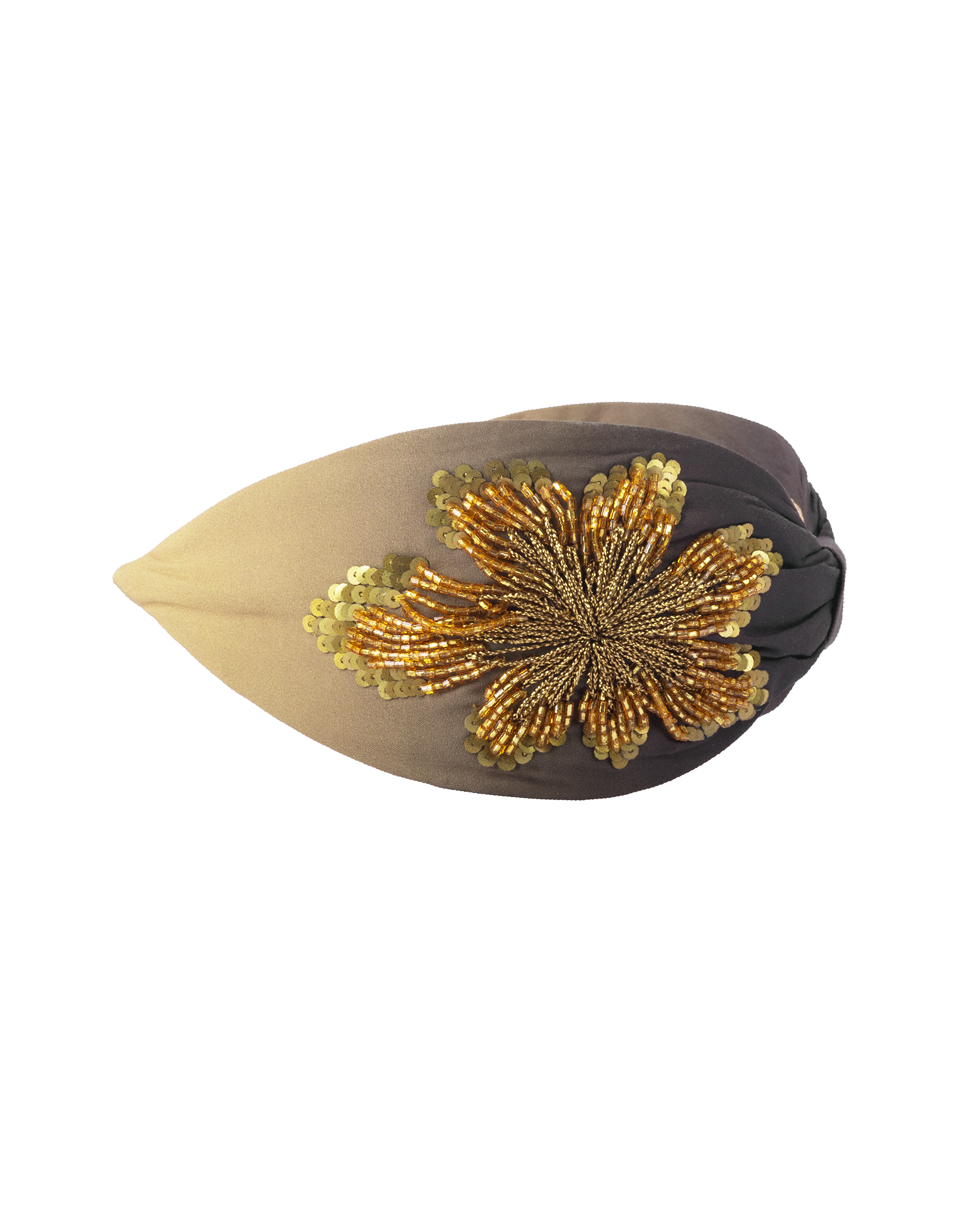 Ombre headband, adorned with an intricately beaded and sequined floral motif.