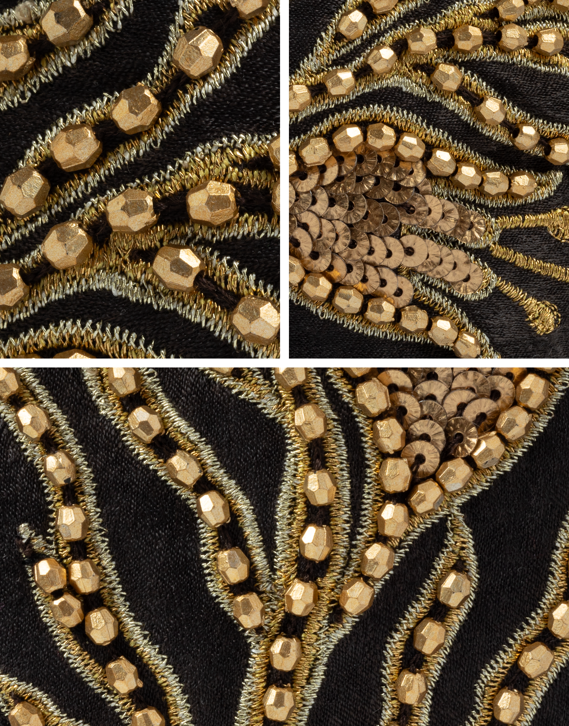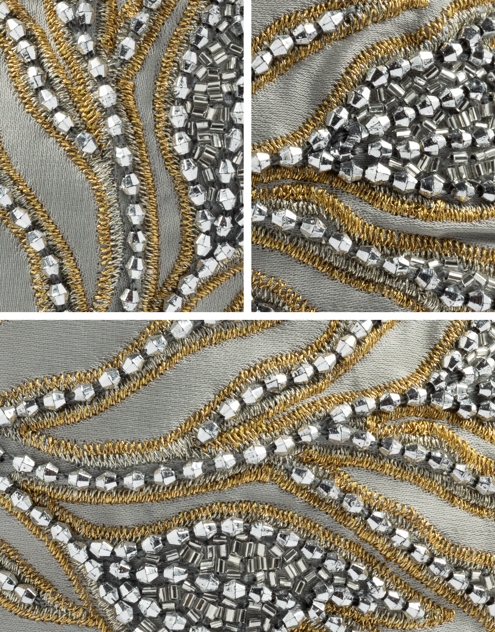 Hand-embellished floral motifs with delicate sequin detailing on a smooth satin base.
